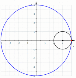 An astroid is a particular mathematical curve: a hypocycloid with four cusps. Specifically, it is the locus of a point on a circle as it rolls inside a fixed circle with four times the radius.[1] By double generation, it is also the locus of a point on a circle as it rolls inside a fixed circle with 4/3 times the radius. It can also be defined as the envelope of a line segment with an end point on each of the axes. It is therefore the envelope of the moving bar in the Trammel of Archimedes.