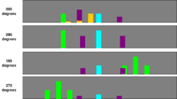 Real-world transmitters and receivers usually are directional. In the figure to the left, assume that each display is connected to a spectrum analyzer connected to a directional antenna aimed in the indicated direction.