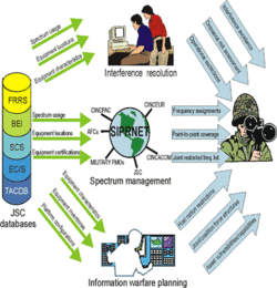 Generating an electronic order of battle (EOB) requires identifying SIGINT emitters in an area of interest, determining their geographic location or range of mobility, characterizing their signals, and, where possible, determining their role in the broader organizational order of battle. EOB covers both COMINT and ELINT.[22] The Defense Intelligence Agency maintains an EOB by location. The Joint Spectrum Center (JSC) of the Defense Information Systems Agency supplements this location database with five more technical databases: