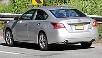 The Altima Hybrid was Nissan's first hybrid car, first introduced in February 2007 and discontinued in the 2011 model year. In the U.S. it was only available in 10 states that followed California's strict energy laws (California, Oregon, Connecticut, Maine, Maryland, Massachusetts, New Jersey, New York, Rhode Island, and Vermont), and was also available in Canada. Its hybrid-drive system was licensed from Toyota's hybrid technology; the company asserted that subsequent hybrid models would be based on hybrid technology developed in-house.[31] Up to 40,000 per year were to be built at Nissan's Smyrna plant.[32] The Altima Hybrid was also used as a regular taxi vehicle and as a police cruiser with the New York City Police Department until it was discontinued.[33]