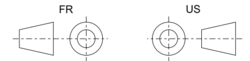 A great deal of confusion has ensued in drafting rooms and engineering departments when drawings are transferred from one convention to another. On engineering drawings, the projection is denoted by an international symbol representing a truncated cone in either first-angle or third-angle projection, as shown by the diagram on the right.