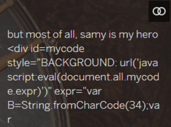 From Handwiki Samy (also known as JS.Spacehero) is a cross-site scripting worm (XSS worm) that was designed to propagate across the social networking site MySpace by Samy Kamkar. Within just 20 hours[1] of its October 4, 2005 release, over one million users had run the payload[2] making Samy the fastest-spreading virus of all time.[3]