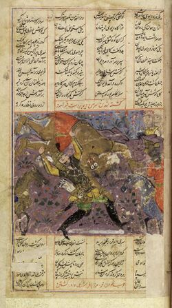 In Islamic discourse, Ahriman embodies the absolute evil (the Devil) in contrast to Iblis (Satan) who represents an original noble being still under God's power.[22] Although the divs, the creations of Ahriman in Zorastian beliefs, entered Islamic literature, to the point of being accepted as reality by Muslims,[23][24](p 34) Ahriman is mostly a stylistic device to refute the idea of absolute evil. The divs were yet another creation by God although prior to the devils, angels, jinn, and humans, mentioned in the Quran.[25](pp 40)