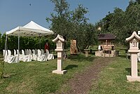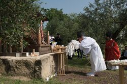 The shrine was founded on 21 June 2014, and opened to the public the following day. The San Marino shrine was inaugurated in the presence of 150 personalities including the president of the Association of Shinto Shrines and Yoko Kishi, mother of the former Prime Minister of Japan Shinzō Abe and daughter of Prime Minister Nobusuke Kishi.[6][7] The shrine was established at the initiative of the Japan San Marino Friendship Society (JSFS) in commemoration of the victims of the 2011 Tōhoku earthquake and tsunami.[8]