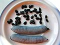 Decaisnea species are deciduous shrubs or small trees growing to 5 to 8 m tall with trunks up to 20 cm in diameter. The leaves are pinnate, 60 to 90 cm long, with up to 25 leaflets each up to 15 cm long and 10 cm broad. The flowers are produced in drooping panicles 25 to 50 cm long. Each flower is 3 to 6 cm wide with greenish-yellow sepals and no petals. The fruit is a soft greenish-yellow to blue-black pod-like follicle up to 10 cm long and 3 cm diameter. It contains a transparent, glutinous, jelly-like pulp containing numerous (around 40) flat black seeds about 1 cm wide. The pulp is edible, but the seeds are not. The flavor of D. fargesii fruit pulp has been described as sweet and similar to watermelon, and the texture described as "gelatinous".[6] D. insignis fruit has been described as "bland" and jelly-like.[7]