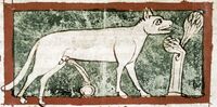 It is claimed by Theophrastus (c. 371 – c. 287 BC) that the lynx's urine hardens into a precious stone with attractive properties akin to amber. Known as lapis lyncurius or lyngurium, the mythical lynx stone was later mentioned by Pliny the Elder and Ovid; the story was related in almost every medieval lapidary, and bestiary until it gradually disappeared from view in the 17th century. It was believed that the Latin name for amber, 'Lyncurium', was derived from this superstition. Other medieval scholars pointed out that this amber was mined extensively in Liguria, which may hint at a more plausible etymology.[4]