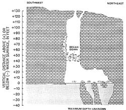 A subsequent USGS exploration into Devil's Hole in 1991 by Alan Riggs, Paul DeLoach, and Sheck Exley entered what they found out to be a narrow tube rather than an 'Infinity Room' at 315 feet (96 m), descending to a depth of 436 feet (133 m). The team reported being able to see down to a depth of some 500 feet (150 m), without visualizing the bottom of the cavern.[6]