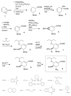 Also in 2006 the group of Masakatsu Shibasaki of the University of Tokyo published a synthesis again bypassing shikimic acid.[10][11]
