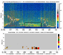 The CALIOP on board CALIPSO allows for the measurements of different aerosol particles by measuring the backscatter at wavelengths of 1064 and 532 nanometers with the ability to receive two orthogonal components in the 532 nm wavelength.[7] Without the presence of optically thick clouds, aerosol layers within the planetary boundary layer may be measured and provides a great technique for measuring aerosol pollution. Ground-based lidar have shown agreement with CALIOP in measuring isolated aerosol layers above the Seoul metropolitan area.[8]