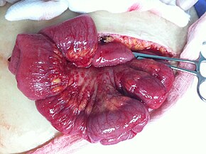 Complications of ovarian cancer can include spread of the cancer to other organs, progressive function loss of various organs, ascites, and intestinal obstructions, which can be fatal. Intestinal obstructions in multiple sites are the most common proximate cause of death.[21] Intestinal obstruction in ovarian cancer can either be a true obstruction, where tumor blocks the intestinal lumen, or a pseudo-obstruction, when tumor prevents normal peristalsis.[90] Continuous accumulation of ascites can be treated by placing a drain that can be self-drained.[21]
