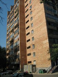 The apartment building in Gagarina Avenue 214, Scherbinki district of Nizhny Novgorod where Sakharov lived in exile from 1980 to 1986. His apartment is now a museum.