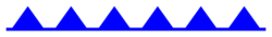 A cold front occurs when a mass of comparatively colder air moves into where warmer air is present. The drier, colder air forms a steeply sloping boundary under the warmer, moister air at the surface and lifts that air. This often causes cloud formations with a strong vertical development, which may manifest as a line of showers and thunderstorms when enough moisture is present.[1] On weather maps, the surface position of the cold front is marked with the symbol of a blue line of triangles/spikes (pips) pointing in the direction of travel. A cold front's location is at the leading edge of the temperature drop off, which in an isotherm analysis would show up as the leading edge of the isotherm gradient, and it normally lies within a sharp surface trough.[2] Cold fronts move faster than warm fronts and can produce sharper changes in weather. Since cold air is denser than warm air, it rapidly replaces the warm air preceding the boundary.[3]