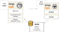 The Icinga Data Out Database (IDODB) is a storage point for historical monitoring data for add-ons or the Icinga Web interface to access. In contrast to its predecessor Nagios, Icinga supports PostgreSQL and Oracle databases in addition to MySQL.