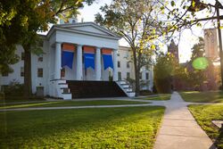 Gettysburg College is a well respected institution for the musically inclined. The college is home to the Sunderman Conservatory of Music, which has performed regionally and internationally.[28] Schmucker Hall houses four main classrooms, a 225-seat recital hall, a 10 station technology/piano lab, and 16 practice rooms. Two practice rooms are dedicated organ practice rooms, with a ratio of six students for one practice room.[29] A recording studio is also found within the building's walls. Choral assemblies usually perform in Christ Chapel, the campus' nondenominational structure that houses a variety of different ceremonies and seats 1,100 individuals.