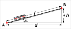 The term track gradient is relative elevation of the two rails along the track. This can be expressed in the distance traveled horizontally for a rise of one unit, or in terms of an angle of inclination or a percentage difference in elevation for a given distance of the track.