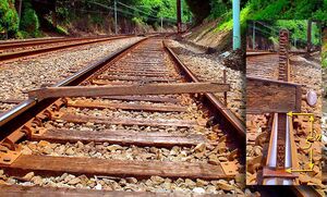 The reference rail is the base rail that is used as a reference point for the measurement. It can vary in different countries. Most countries use one of the rails as the reference rail. For example, North America uses the reference rail as the line rail which is the east rail of tangent track running north and south, the north rail of tangent track running east and west, the outer rail (the rail that is further away from the center) on curves, or the outside rails in multiple track territory.[6] For Swiss railroad, the reference rail for tangent track is the center line between two rails, but it is the outside rail for curved track.[7]