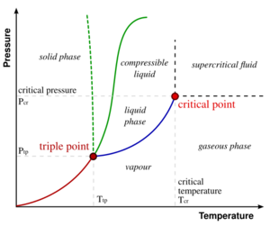 However, introducing salinity into the fluid raises the critical point to higher temperatures and pressures. The critical point of seawater (3.2 wt. % NaCl) is 407 °C (765 °F) and 298.5 bars,[8] corresponding to a depth of ~2,960 m (9,710 ft) below sea level. Accordingly, if a hydrothermal fluid with a salinity of 3.2 wt. % NaCl vents above 407 °C (765 °F) and 298.5 bars, it is supercritical. Furthermore, the salinity of vent fluids have been shown to vary widely due to phase separation in the crust.[9] The critical point for lower salinity fluids is at lower temperature and pressure conditions than that for seawater, but higher than that for pure water. For example, a vent fluid with a 2.24 wt. % NaCl salinity has the critical point at 400 °C (752 °F) and 280.5 bars. Thus, water emerging from the hottest parts of some hydrothermal vents can be a supercritical fluid, possessing physical properties between those of a gas and those of a liquid.[6][7]