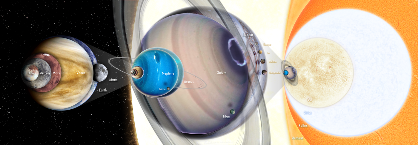 Relative masses of the bodies of the Solar System. Objects smaller than Saturn are not visible at this scale.