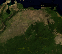 Venezuela – sovereign country located in northern South America.[1] Venezuela comprises a continental mainland and numerous islands located off the Venezuelan coastline in the Caribbean Sea. The country borders Guyana to the east, Brazil to the south, and Colombia to the west. Trinidad and Tobago, Grenada, St. Lucia, Barbados, Curaçao, Bonaire, Aruba, Saint Vincent and the Grenadines and the Leeward Antilles lie just north, off the Venezuelan coast. Falling within the tropics, Venezuela sits close to the equator, in the Northern Hemisphere. A former Spanish colony, which has been an independent republic since 1821, Venezuela holds territorial disputes with Guyana, largely concerning the Essequibo area, and with Colombia concerning the Gulf of Venezuela. In 1895, after the dispute over the Guyana border flared up, it was submitted to a neutral commission, which in 1899 decided it mostly in Guyana's favour.[2] Today, the Bolivarian Republic of Venezuela is known widely for its petroleum industry, the environmental diversity of its territory, and its natural features. Venezuela is considered to be among the world's 17 most biodiverse countries.[3]