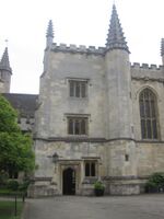 The college is built on the site of St John the Baptist Hospital, which was dissolved in 1457 and its property granted to William of Waynflete.[13] Some of the hospital buildings were reused by the college, and the kitchens survive today as the college bar, the Old Kitchen Bar.[9][32]