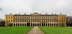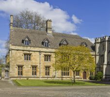 Ultimately, the idea of integrating the New Building into a new quad was abandoned, and the ends of the building were finally completed in 1824 with two returns designed by Thomas Harrison.[30] Today, it stands apart from the Cloister, overlooking four croquet lawns on one side and the Grove deer park on the other. It is used for accommodation for undergraduates and fellows, including historically Edward Gibbon and C. S. Lewis, and also houses the wine cellar.[46]