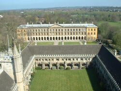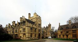 The college grounds stretch north and east from the college, and include most of the area bounded by Longwall Street, the High Street (where the porter's lodge is located), and St Clement's. The college features a variety of architectural styles, and has been described as "a medieval nucleus with two incomplete additions, one from the eighteenth and one from the nineteenth century".[30]