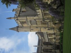 The tower is 144 feet tall and an imposing landmark on the eastern approaches to the city centre.[31] It has been the model for other towers, including Mitchell Tower of the University of Chicago,[42] Manhattan's First Presbyterian Church,[43] and All Saints' Church in Churchill, Oxfordshire.[44] It forms the centre of the May Morning celebrations in Oxford, from which the choir sing pieces including the Hymnus Eucharisticus and the Dean of Divinity blesses the University, city, and crowds.[8][45]