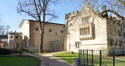 In 1880–1884, the college extended westwards onto the former site of Magdalen Hall. The hall was an independent academic hall that developed from Magdalen College School, not the earlier Magdalen Hall founded by William Waynflete.[10] Most of Magdalen Hall's buildings were destroyed by fire in 1820, though the Grammar Hall survived and was restored by Joseph Parkinson.[30] The hall moved to Catte Street in 1822 and was incorporated as Hertford College in 1874.[10]