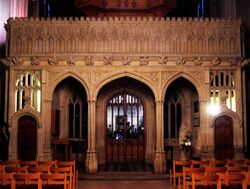 The chapel is a place of worship for members of the college and others in the University of Oxford community and beyond. As a High Anglican chapel, its tradition is influenced by the Catholic Revival in the Church of England. Said and sung services are held daily during term.[36] The choir sings Choral Evensong or Evening Prayer every day at 6:00 pm except on Mondays.[36] On Sundays, a Sung Eucharist is offered in the morning at 11:00 am. Compline (Night Prayer) is sung once each week, and is followed by a service of Benediction twice per term.[36] Mass is also sung on major holy days.[36][37]