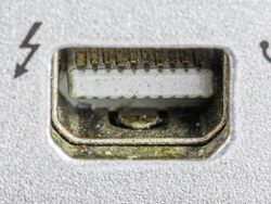 The Thunderbolt port on the new Macs is in the same location relative to other ports and maintains the same physical dimensions and pinout as the prior MDP connector. The main visible difference on Thunderbolt-equipped Macs is a Thunderbolt symbol next to the port.[11]