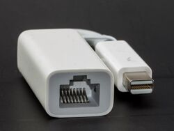 Thunderbolt is the brand name of a hardware interface for the connection of external peripherals to a computer. It was developed by Intel in collaboration with Apple.[7][8] It was initially marketed under the name Light Peak, and first sold as part of an end-user product on 24 February 2011.[1]