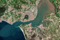 The city occupies an area of 100.05 km2 (39 sq mi), and its city boundaries, unlike those of most major cities, coincide with those of the municipality.[63] The rest of the urbanised area of the Lisbon urban area, known generically as Greater Lisbon (Portuguese: Grande Lisboa) includes several administratively defined cities and municipalities, in the north bank of the Tagus River. The larger Lisbon metropolitan area includes the Setúbal Peninsula to the south.