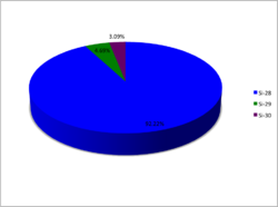A chart showing the relative abundances of the naturally occurring isotopes of silicon.