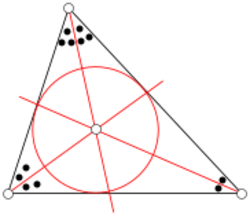 One way to identify locations of points in (or outside) a triangle is to place the triangle in an arbitrary location and orientation in the Cartesian plane, and to use Cartesian coordinates. While convenient for many purposes, this approach has the disadvantage of all points' coordinate values being dependent on the arbitrary placement in the plane.
