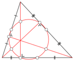 Every triangle has a unique Steiner inellipse which is interior to the triangle and tangent at the midpoints of the sides. Marden's theorem shows how to find the foci of this ellipse.[31] This ellipse has the greatest area of any ellipse tangent to all three sides of the triangle.