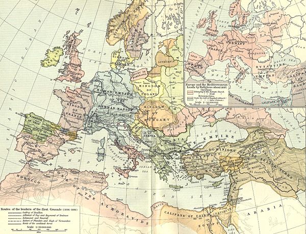 The story of the first crusade from the crusaders' perspective recounts the struggles of the first wave of crusaders to reach the hinterlands of Byzantium, of Islamic Syria, and then of Jerusalem; of the terrible slaughters of Jewish populations committed by a second wave as it marched through the Rhineland [8]; of finding food and facing starvation; of the "miracles" associated with the alleged finding of the Holy Lance in Antioch; of the competition between European princes for leadership; and of the eventual taking of Jerusalem itself. It was an achievement to coordinate crusaders with sharply different languages, styles of leadership, and modes of fighting. That such a band even made it to Jerusalem is remarkable, and was possible, first, because of divisions within the realm of Islam, and second, because Muslims in the various provinces misinterpreted the presence of the crusading army. They seem to have regarded the Christian forces as renegades, escapees from the poverty and oppression of the "territory of war." This interpretation led to a low estimate of the threat posed to Muslim security by an army that, despite weaknesses, was motivated by a profound religious fervor.[9]