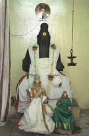 Vasuki is praised for her faithfulness as a wife towards her husband Valluvar and is noted as a model of Tamil womenhood.[18] She has her own sanctum at the Ekambareswarar–Kamakshi Temple, commonly known as the Valluvar temple, in the neighborhood of Mylapore in Chennai, where she is patterned after the Hindu deity Kamakshi and worshiped.[18] Her idol, along with the idol of Valluvar, is carried in an annual procession in the Tamil month of Panguni (mid March to Mid April) during the Bramotsavam celebrations of the Kapaleeshwarar Temple.[19] The wedding hall near the Mylapore Valluvar temple is also named after her and Valluvar as Valluvar–Vasuki Tirumana Mantapam.[20]