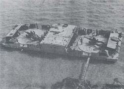 In November 1920, the Regimentul Artileriei Fluviale (Riverine Artillery Regiment) was formed as part of the Romanian Naval Forces. The Regiment had 14 armed barges: 8 armed each with a single 152 mm Canet gun (Russian guns captured in 1918 along with the barges they were mounted on), 4 armed each with four 120 mm guns Canet and 2 armed with two 102 mm guns Obuchov M1910 each.[5] By early 1941, the Regiment had two sections of 152 mm guns, one section of 47 mm Škoda guns and one section of 40 mm Bofors AA guns (each section had two guns).[6]