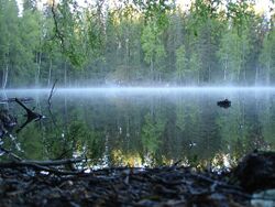 Cloud cover is often referred to as "mist" when encountered on surfaces of mountains, whereas moisture suspended above a body of water, cleared or marsh area is usually called "fog". One main difference between mist and fog is visibility.[1] The phenomenon is called fog if the visibility is 1 km (1,100 yd) or less. In the United Kingdom, the definition of fog is visibility less than 100 m (330 ft) on the surface for driving purposes,[2] while for pilots the distance is 1 km at cruising height. Otherwise, it is known as mist.