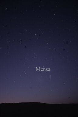 One of the faintest constellations in the night sky, Mensa contains no apparently bright stars—the brightest, Alpha Mensae, is barely visible in suburban skies. Part of the Large Magellanic Cloud, several star clusters and a quasar lie in the area covered by the constellation, and at least three of its star systems have been found to have exoplanets.