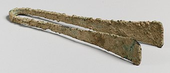 Tweezers are known to have been used in predynastic Egypt. There are drawings of Egyptian craftsmen holding hot pots over ovens with a double-bow shaped tool. Asiatic tweezers, consisting of two strips of metal brazed together, were commonly used in Mesopotamia and India from about 3000 BC, perhaps for purposes such as catching lice.[2] During the Bronze Age, tweezers were manufactured in Kerma.[3]
