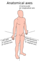 Anatomical axes in a human, similar for other orthograde bipedal vertebrates