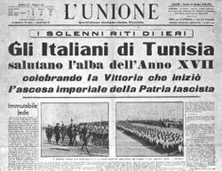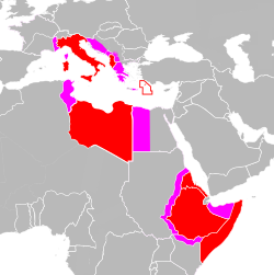 The bars of this prison are Corsica, Tunisia, Malta, and Cyprus. The guards of this prison are Gibraltar and Suez. Corsica is a pistol pointed at the heart of Italy; Tunisia at Sicily. Malta and Cyprus constitute a threat to all our positions in the eastern and western Mediterranean. Greece, Turkey, and Egypt have been ready to form a chain with Great Britain and to complete the politico-military encirclement of Italy. Thus Greece, Turkey, and Egypt must be considered vital enemies of Italy's expansion ... The aim of Italian policy, which cannot have, and does not have continental objectives of a European territorial nature except Albania, is first of all to break the bars of this prison ... Once the bars are broken, Italian policy can only have one motto—to march to the oceans.—Benito Mussolini, The March to the Oceans[55]