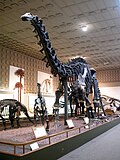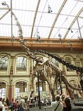 Two reconstructed fossils, a Giraffatitan brancai and a Diplodocus carnegii