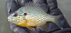 Many ecosystems are linked by water and ponds have been found to hold a greater biodiversity of species than larger freshwater lakes or river systems.[23] As such, ponds are habitats for many varieties of organisms including plants, amphibians, fish, reptiles, waterfowl, insects and even some mammals. Ponds are used for breeding grounds for these species but also as shelter and even drinking/feeding locations for other wildlife.[24][25] Aquaculture practices lean heavily on artificial ponds in order to grow and care for many different type of fish either for human consumption, research, species conservation or recreational sport.