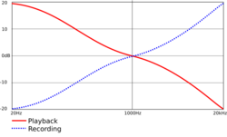 Pre-emphasis is commonly used in telecommunications, digital audio recording, record cutting, in FM broadcasting transmissions, and in displaying the spectrograms of speech signals. One example of this is the RIAA equalization curve on 33 rpm and 45 rpm vinyl records. Another is the Dolby noise-reduction system as used with magnetic tape.