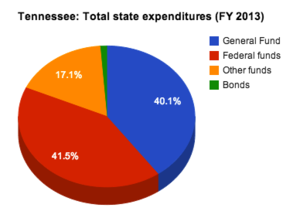 Governor Bill Haslam announced his fiscal year 2016 budget proposal on February 9, 2015. Under this proposal, total state spending would have equaled about $33.3 billion, including $29.4 billion in general fund spending. The largest portions of general fund spending would have gone to education (47 percent); health and social services (34 percent); and law, safety, and correction (11 percent).[11]