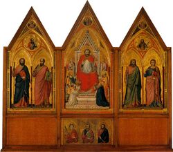 Recursion has been used in paintings since Giotto's Stefaneschi Triptych, made in 1320. Its central panel contains the kneeling figure of Cardinal Stefaneschi, holding up the triptych itself as an offering.[17][18] This practice is more generally known as the Droste effect, an example of the Mise en abyme technique.