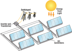 Solar energy conversion describes technologies devoted to the transformation of solar energy to other (useful) forms of energy, including electricity, fuel, and heat.[1] It covers light-harvesting technologies including traditional semiconductor photovoltaic devices (PVs), emerging photovoltaics,[2][3][4] solar fuel generation via electrolysis, artificial photosynthesis, and related forms of photocatalysis directed at the generation of energy rich molecules.[5]