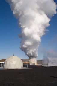 The Reykjavík Capital Area district heating system serves around 230,000 residents had an maximum thermal power output of 830 MW. In 2018, the average annual heating demand in the Reykjavik area was 473MW.[90] It is the largest district heating system in Iceland and is operated by Veitur. Heat is supplied from the Hellisheiði (200MWth) and Nesjavellir (300MWth) CHP plants, as well as a few lower temperature fields inside Reykjavik. Heating demand has increased steadily as the population has grown, neccesitating enlargement of thermal water production in the Hellisheiði CHP plant.[91]